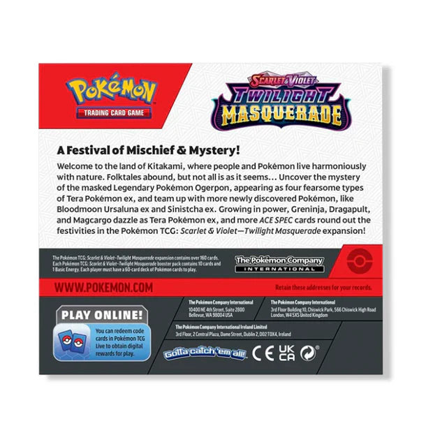 - Includes 1 Booster Box with 36 Pokémon TCG: Scarlet & Violet—Twilight Masquerade booster packs